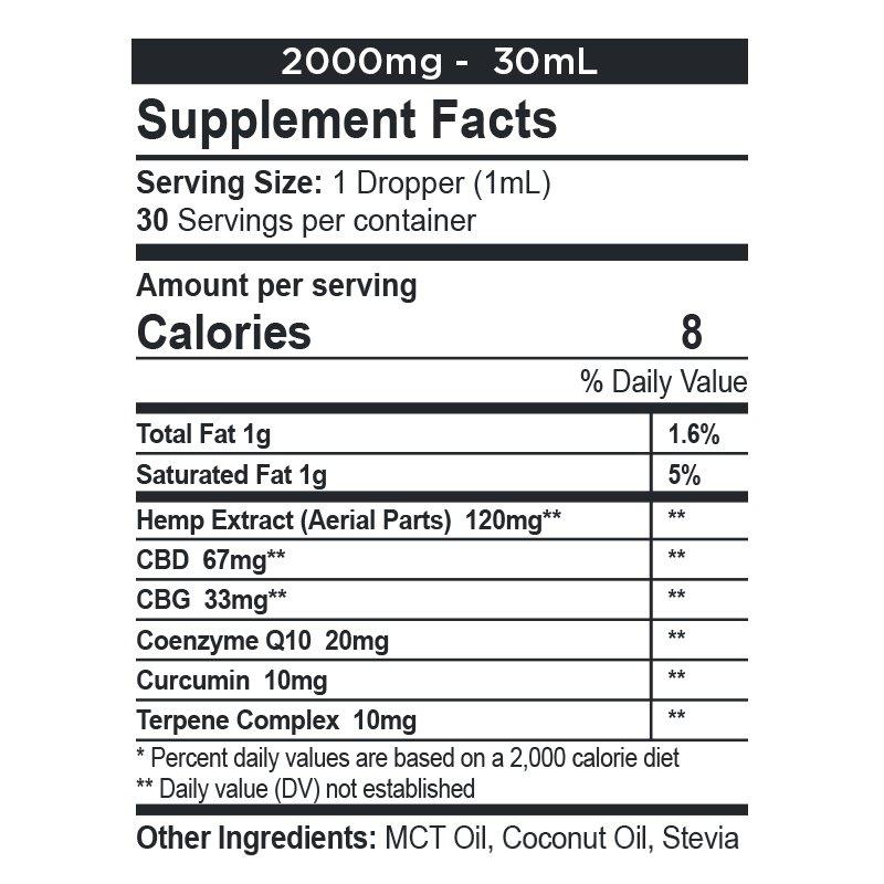 This 2:1 ratio of broad spectrum CBD to CBG Tincture, blended with 18 proprietary terpenes, Curcumin, and Coenzyme Q10, represents a massive leap forward in the formulation of CBD tinctures. This super blend contains exceptional cannabinoids like CBG, CBC, and CBD-V that boost the “entourage effect” to provide you with the wellness results you’re looking for! Remember, CBD works best when it’s paired with the other cannabinoids found within the hemp plant… and this tincture is chock full of them.