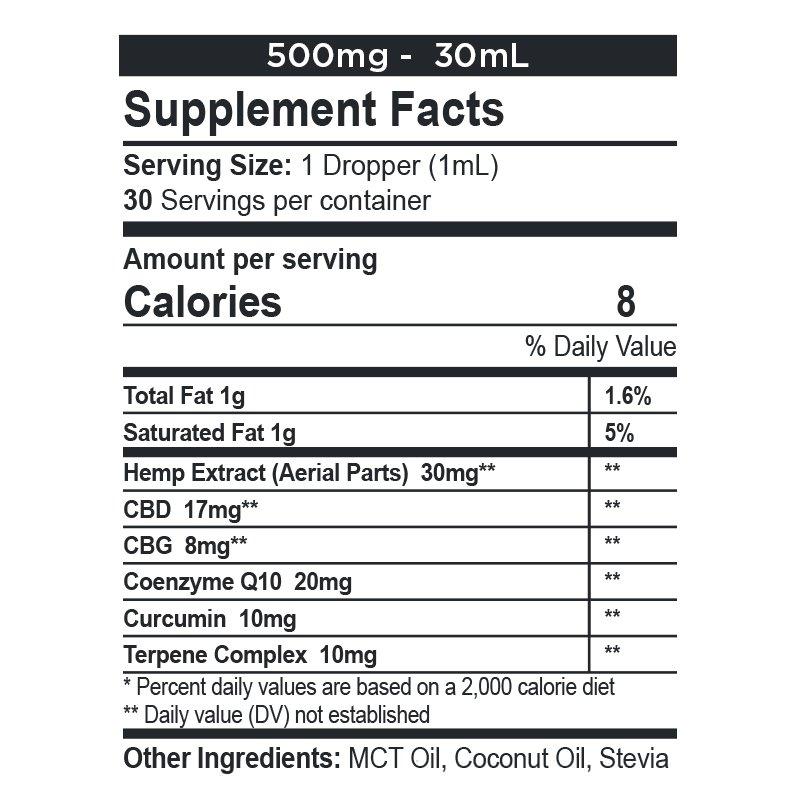 So, what makes this Wellness 2:1 Tincture a “super blend” that helps impart so many essential nutrients and vitamins? Besides CBD and CBG, curcumin is the active ingredient in turmeric; and it’s a natural, yet powerful antioxidant and anti-inflammatory that people have been taking advantage of for centuries. Coenzyme Q10, also known as CoQ10, has a wide range of health benefits as well. CoQ10 is a nutrient that is naturally produced within our bodies and plays a vital role in energy production and much more, but as we get older the natural production of this nutrient slows. By supplementing with CoQ10, you’re helping your body function at its highest level, day in and day out.